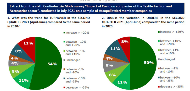 The quarterly survey conducted by Confindustria Moda revealed - for the sample of associated leather goods manufacturers - an average increase in turnover in the first 6 months of 2021 equal to +29.5% compared to last year.